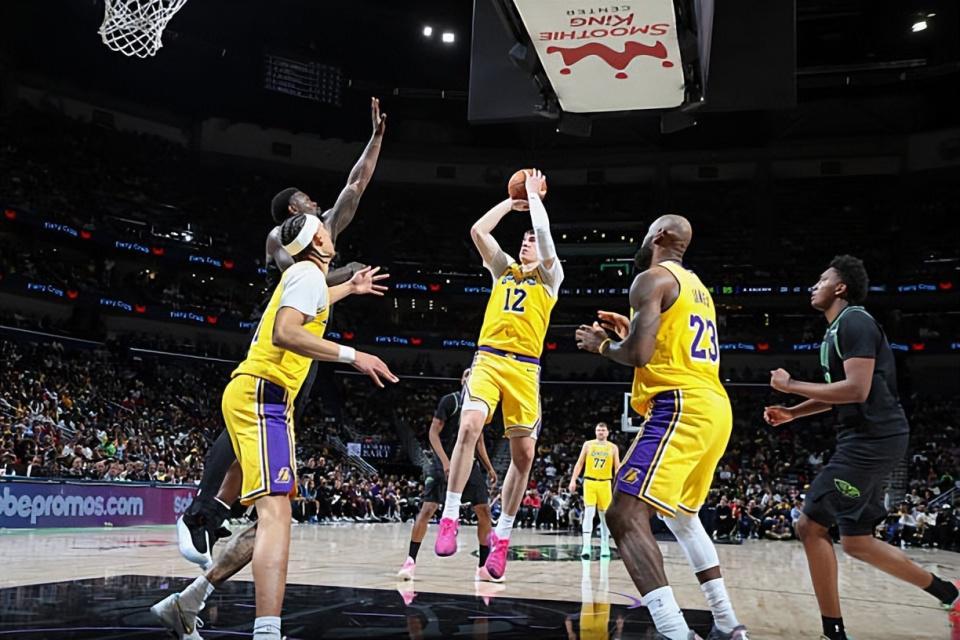 本场比赛中,湖人的先发锋线新星杰克-拉拉维亚(Jake LaRavia)的存在感出现了一定程度的下滑。拉拉维亚全场出场34分46秒,投篮4中2,三分线外2中0,罚球2中1,得到了5分5篮板2抢断,还有3次犯规,正负值为0。拉拉维亚在进攻端没有得到太多的出手机会,也没有保持自己的外线投篮手感,也没有得到太多的分数,与前几场相比确实是差了一些的。当然了,拉拉维亚在防守端还是展现出了不俗的个人防守能力的,他在防守端的功能和作用也是值得肯定的。拉拉维亚在本场比赛中虽然没有发挥出自己的最佳表现,但是好歹也没有给球队造成太大的负面影响,这也是为球队的胜利做出了一定的帮助和支持的。